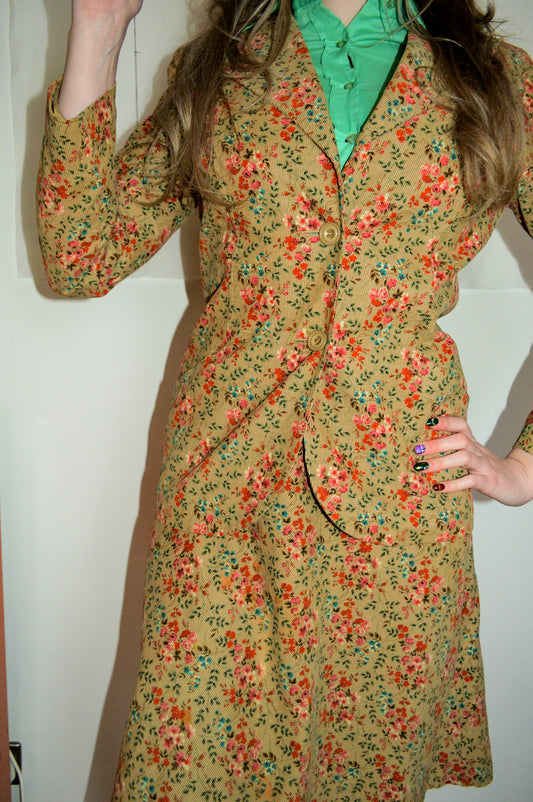 Vintage 70s St Michaels Cord Floral Two Piece Suit