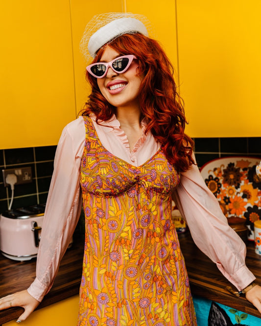 Kitsch Inn Vintage 60s Pastel Pink Frill Blouse