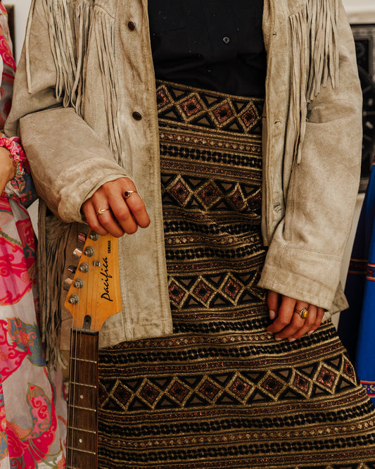 Vintage 70s Brown and Gold Maxi Skirt