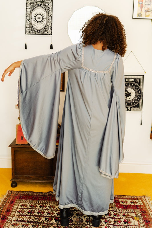 Vintage 70s Grey Blue Wizard Sleeve Maxi Dress