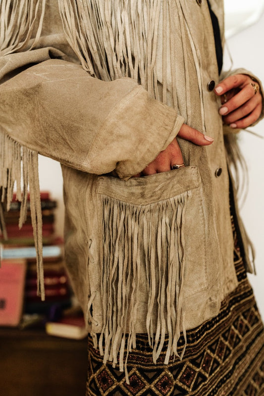 Vintage 70s Cream Suede Fringe Jacket