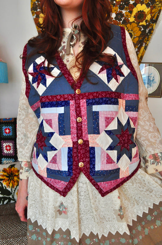 Vintage 70s Patchwork Quilted Waistcoat