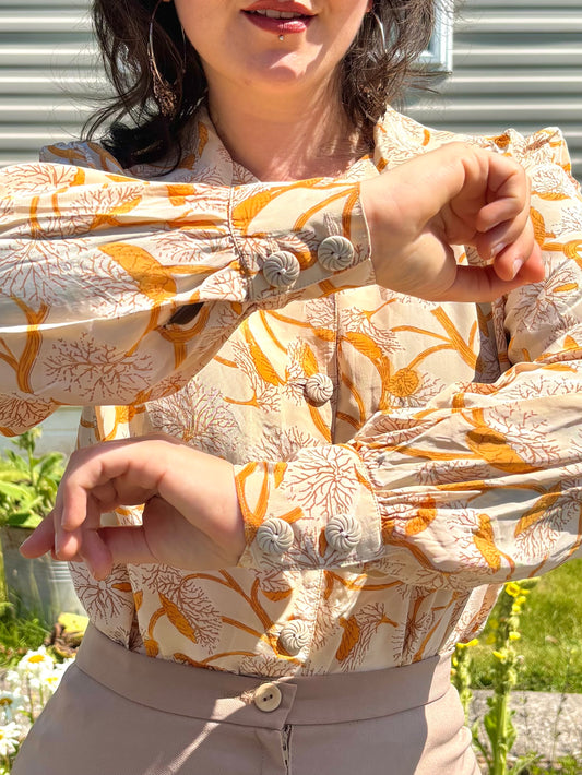 Vintage 70s Orange Tree Print Shirt