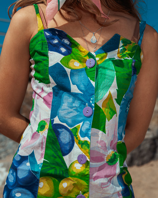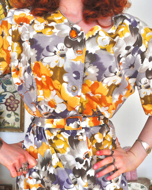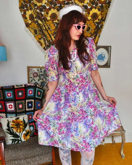 Vintage 80s Colourful Floral Midi Dress