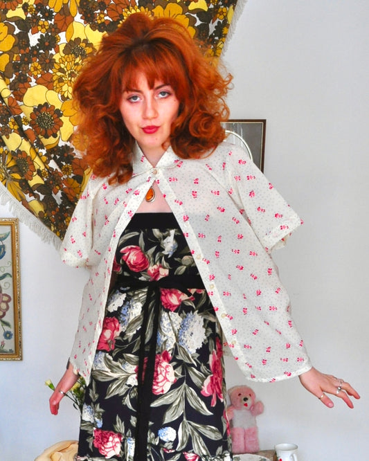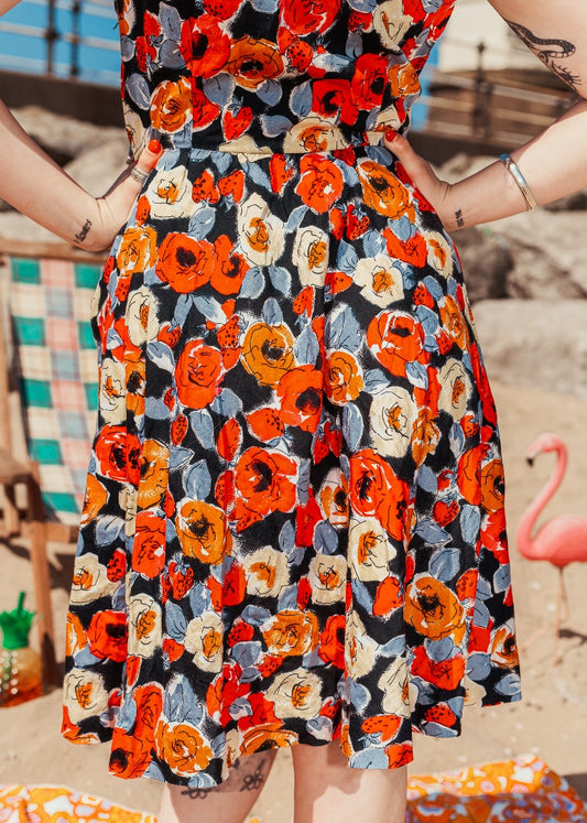 Vintage 80s does 50s Red and Black Floral Dress