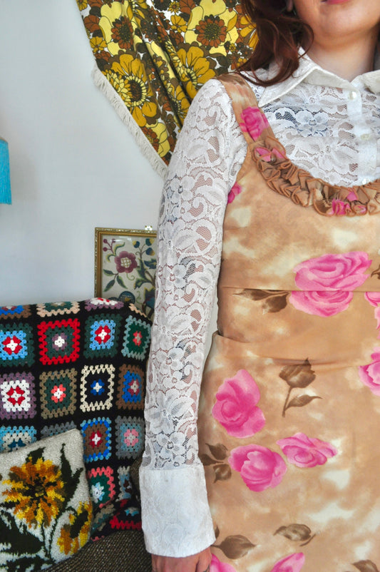 Vintage 90s Beige and Pink Floral Dress