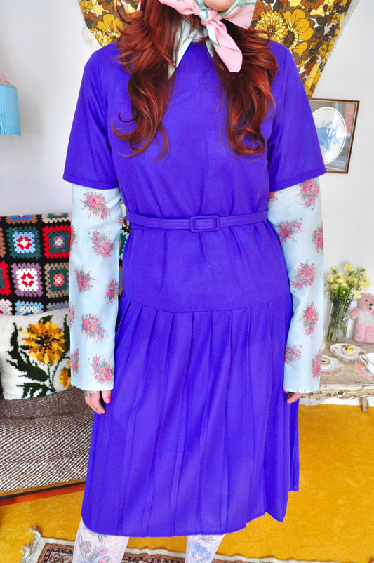 Vintage 80s Purple Drop Waist Midi Dress