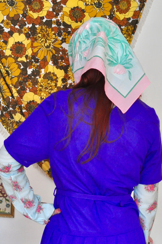 Vintage 80s Mint Green and Pink Scarf