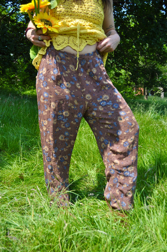 Vintage Relaxed Brown Floral Trousers