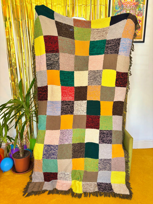 Vintage Black Rainbow Granny Square Crochet Blanket