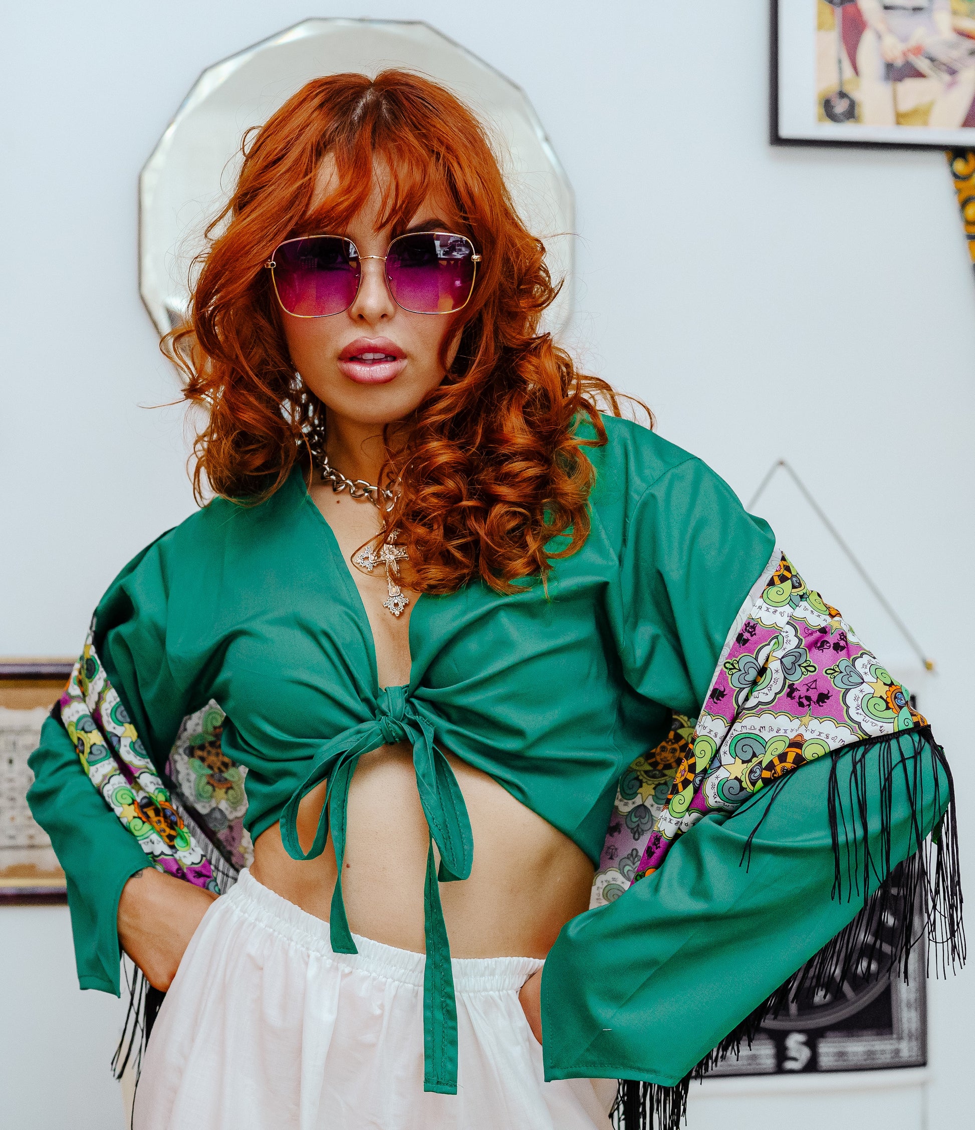 A stunning witchy wrap top that will be your go-to for years to come! These stunning tops are made from a deadstock emerald green 100% cotton, and can wrap around and tie at the back or just tie at the front. They have the most incredible long sleeves with pointed elf cuffs, and their cropped shape make them perfect for pairing with all your maxi skirts and pants.