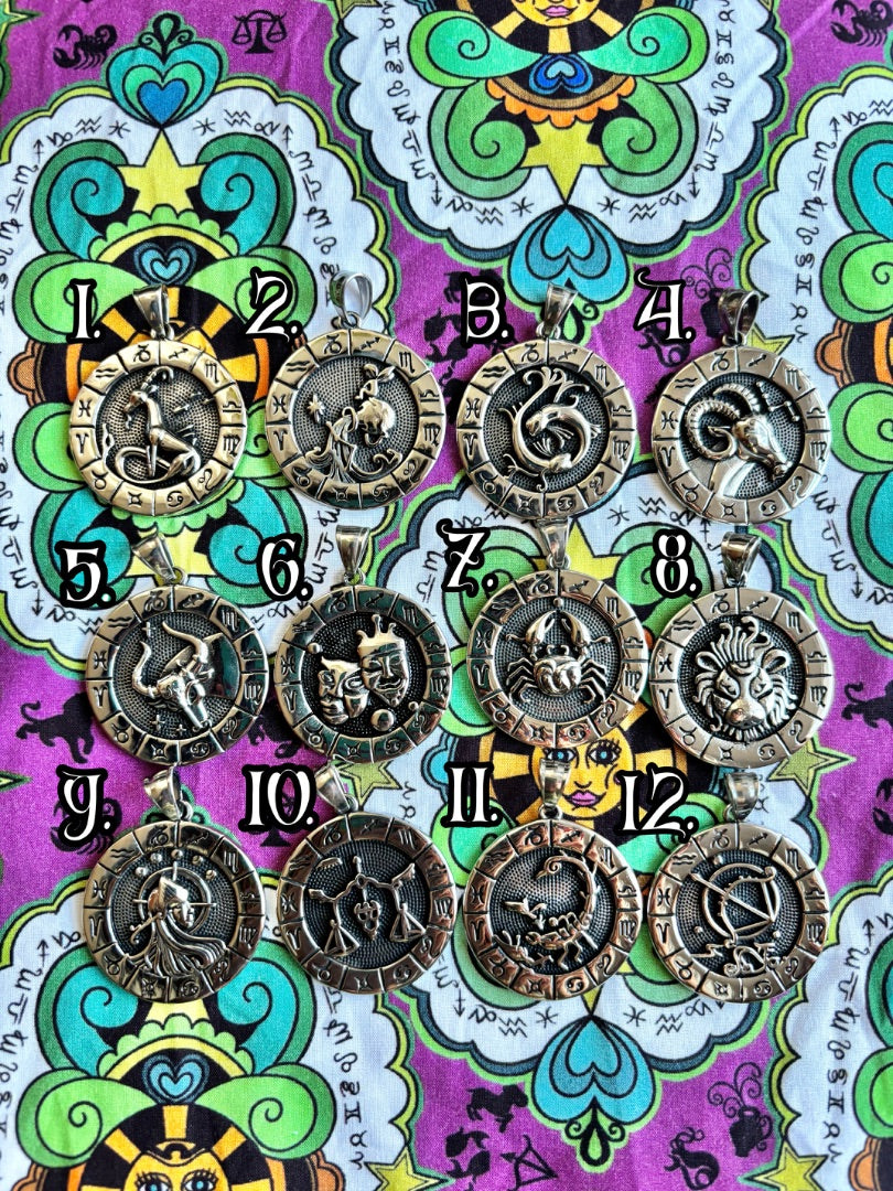 Inspired by all the incredible 60s and 70s astrology art and accessories, we present: your very own zodiac sign! These stunning signs of the zodiac necklaces consist of a heavy engraved pendant, the text of the sign on the back, and a fine chain. The perfect finishing touch to your Castle Crowley outfit.