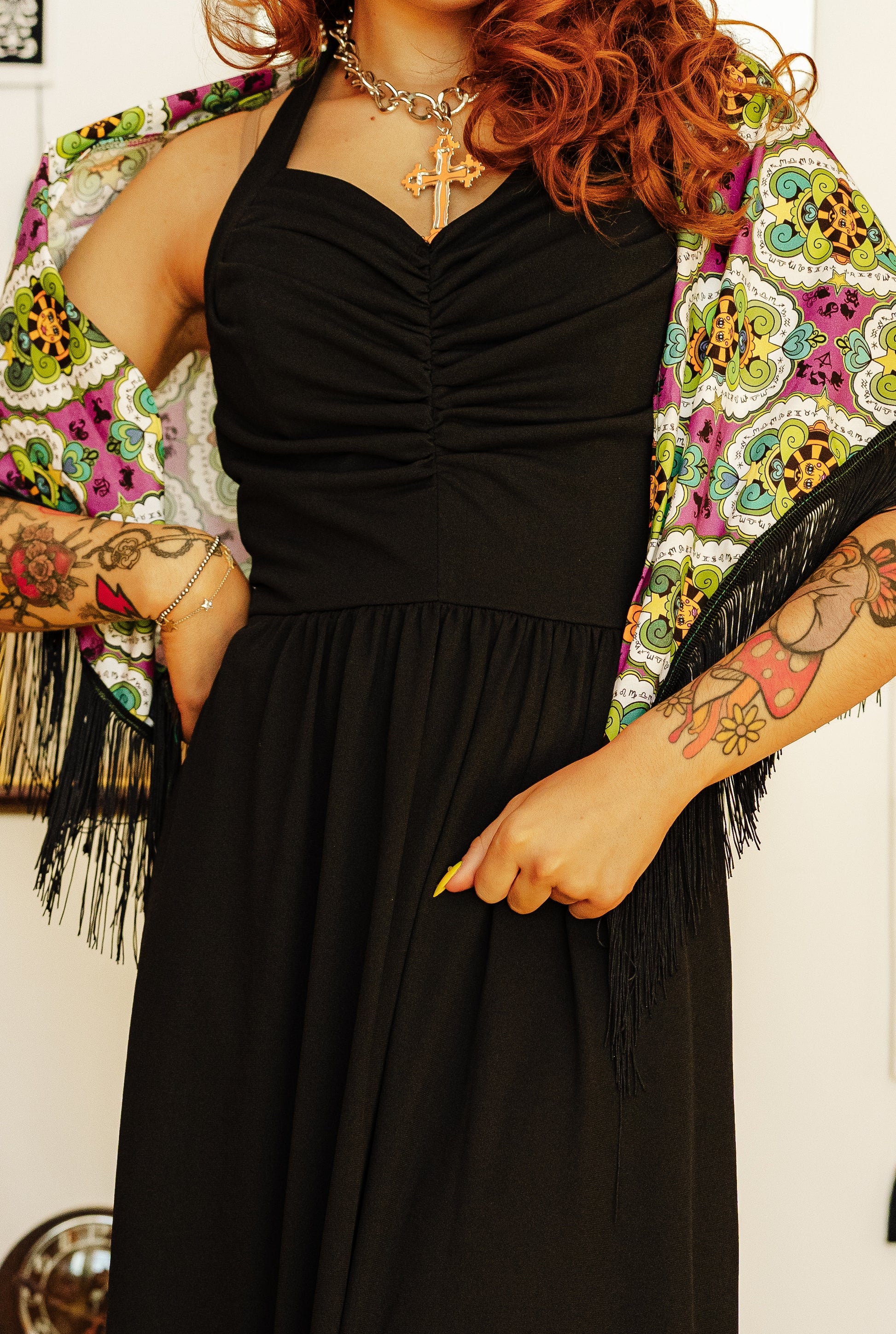Details: What a sensational timeless classic! Made from a midweight classic 70s polyester, this dress has a halter straps, a ruched chest and that stunning sweetheart neckline. A wardrobe staple that will never fail to make you feel amazing!